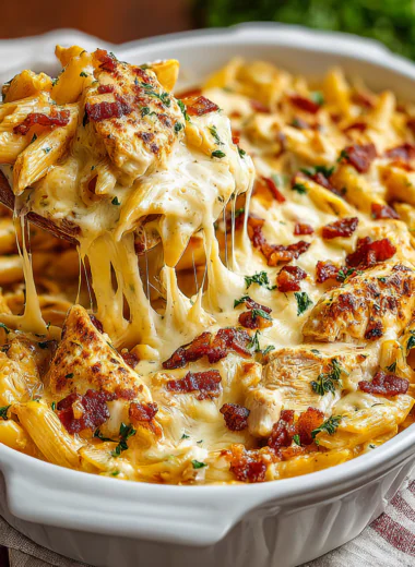 Rich, creamy, and loaded with flavor, this Cheesy Chicken Bacon Ranch Pasta Bake combines tender chicken, crispy bacon, and a savory ranch twist, ideal for gat…
