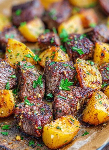 Savory Sheet Pan Garlic Butter Steak Bites with Potatoes offer a delightful blend of tender steak and crispy potatoes, perfect for a cozy family dinner or gath…