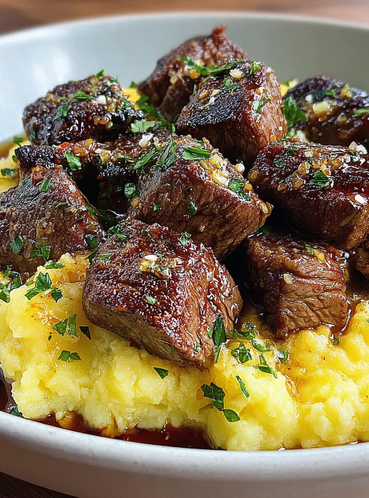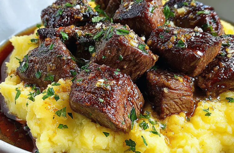 Sizzling garlic butter steak bites paired with creamy mash create an irresistible dish, ideal for cozy dinners or special occasions that impress every palate.