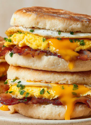 Savory layers of fluffy, homemade English muffins, crispy bacon, and creamy eggs come together in Big-Batch English Muffin Breakfast Sandwiches, ideal for brun…