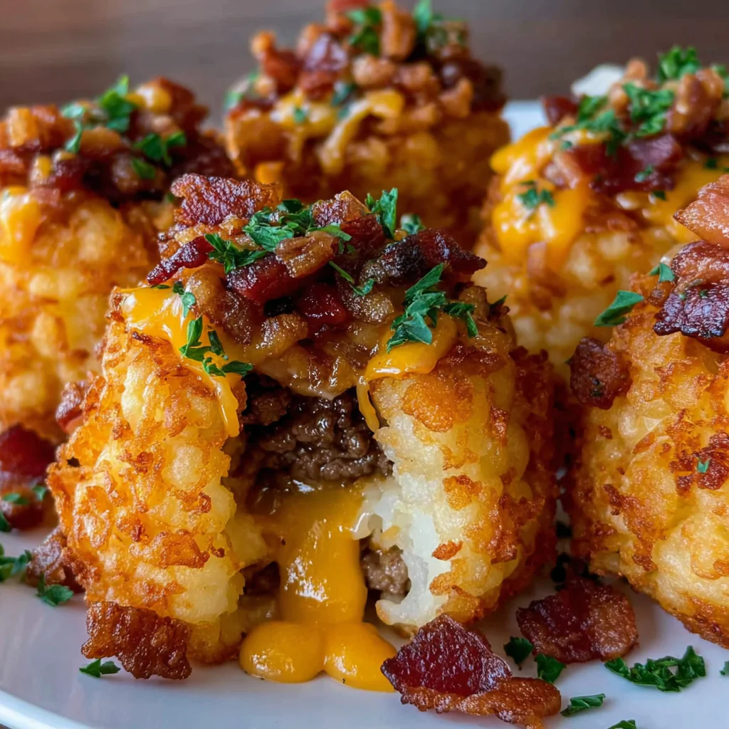 Bacon Cheeseburger Stuffed Tater Tot Cones are more than just a recipe—they’re an experience. With their crunchy exterior, savory filling, and gooey melted cheese, they capture all the joy of comfort food in a fun, handheld cone. Perfect for kids, adults, and anyone who loves creative cooking, these cones are guaranteed to impress at any table.