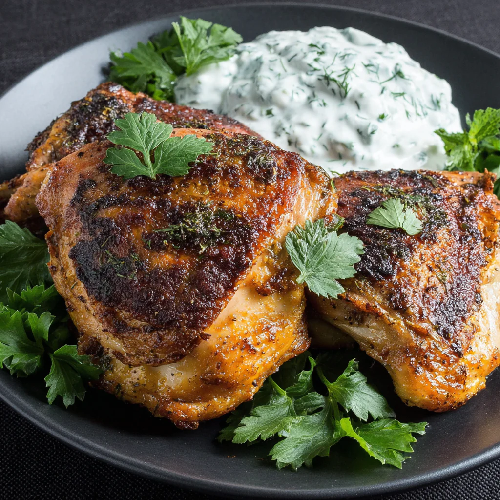 Serve with the optional yogurt sauce (recipe below) and a sprinkle of fresh parsley. The sauce adds a cooling, creamy contrast to the savory, herb-crusted chicken.