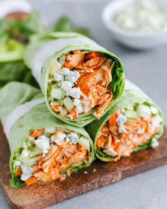 - Buffalo Chicken Veggie Wraps – Load up with cucumbers, bell peppers, and spinach for a fresh take.
