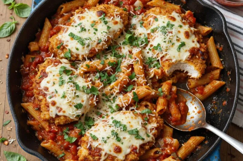 That’s where this Chicken Parmesan Pasta Skillet comes in. It deconstructs the classic, keeping the golden, tender bites of chicken and that gooey, cheese-pull topping, but tossing the deep-frying mess. By using a single skillet, we leverage the fond—those sticky, caramelized bits left behind after searing—to build a sauce with depth that boiled-pasta versions simply can’t match. It’s weeknight cooking at its finest: smart, fast, and incredibly satisfying. Creamy Chicken Mushroom Fettuccine Bake: The Ultimate Comfort Food.