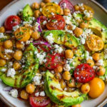 A vibrant salad can often bridge the gap between health-conscious and delicious, and this one hits the mark beautifully. Packed with protein from the chickpeas, creamy goodness from the avocado, and the tangy bite of feta, each mouthful delivers a robust taste that’s sure to please any palate.
