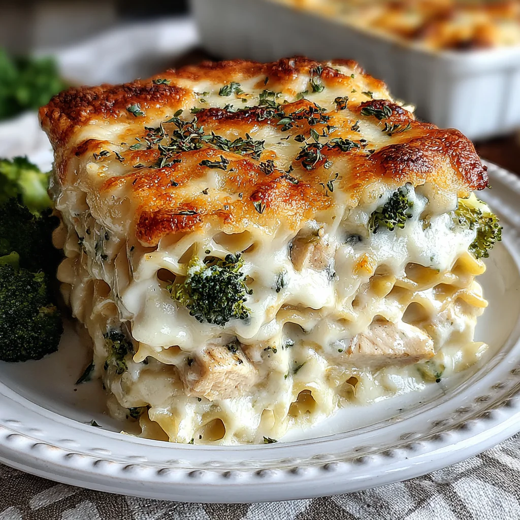 This dish seamlessly blends tender chicken, vibrant broccoli, and a rich, creamy Alfredo sauce, all topped with a crunchy, golden layer of cheese. It's an easy way to incorporate greens while still indulging in a much-loved creamy pasta dish. The best part? It’s simple to make and an even better make-ahead option for those who love to plan meals in advance.