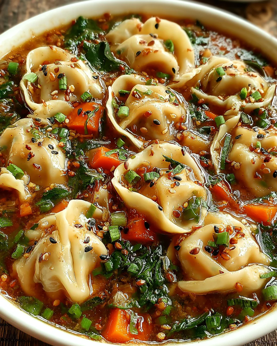 Imagine plump potstickers floating in a deliciously seasoned broth, garnished with fresh scallions and vibrant vegetables. It’s a one-pot wonder that not only satisfies your cravings but also warms your heart.