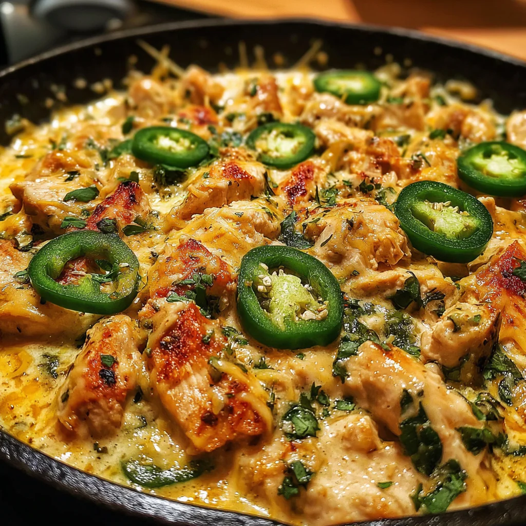 These ingredients come together to create a creamy, cheesy sauce that clings to the chicken while the jalapeños add brightness and a spicy edge.