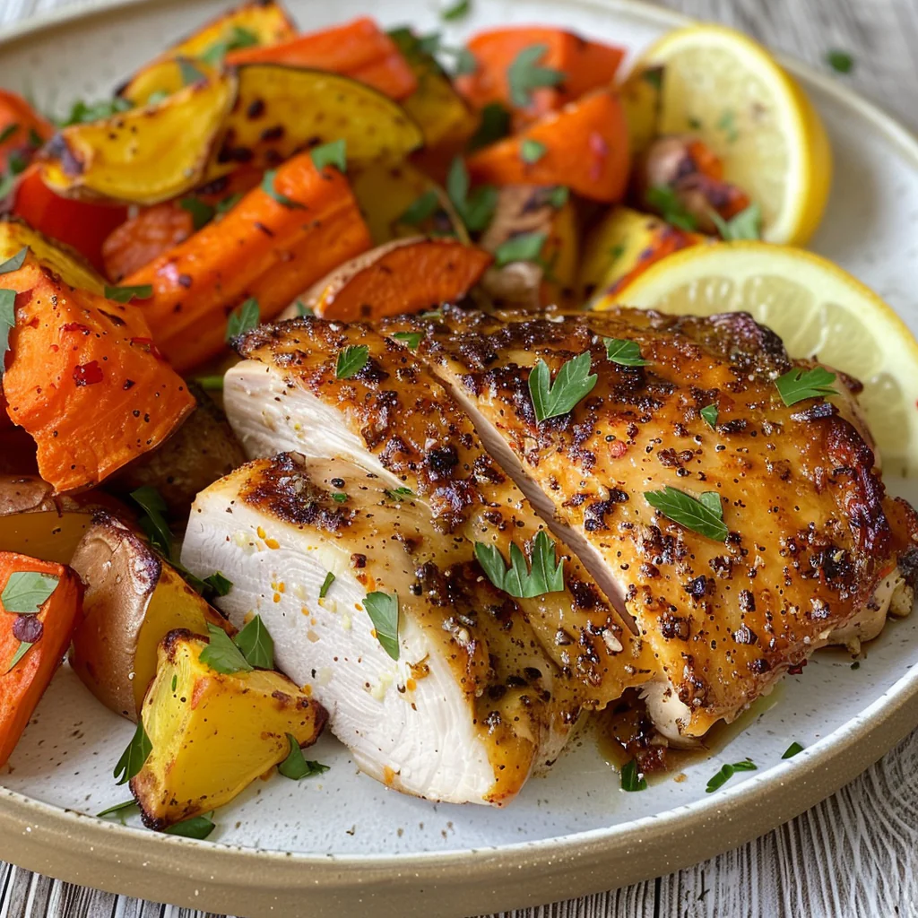 - Root Vegetables: A mix of carrots, parsnips, and sweet potatoes offers a spectrum of vitamins and textures. They are dense enough to withstand the high heat required for the chicken without turning to mush.