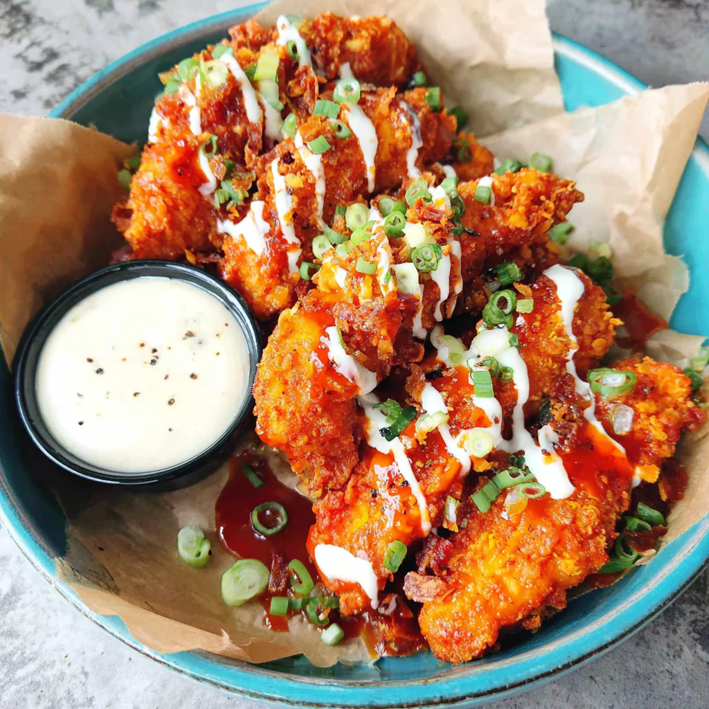 Buffalo chicken tenders are a fantastic way to enjoy a classic flavor in a crispy, tender form. Perfect as an appetizer or a main dish, they bring the heat of buffalo sauce together with the satisfying crunch of fried chicken. Whether served with a side of celery and carrots or paired with a cooling blue cheese dip, these tenders are sure to be a hit.
