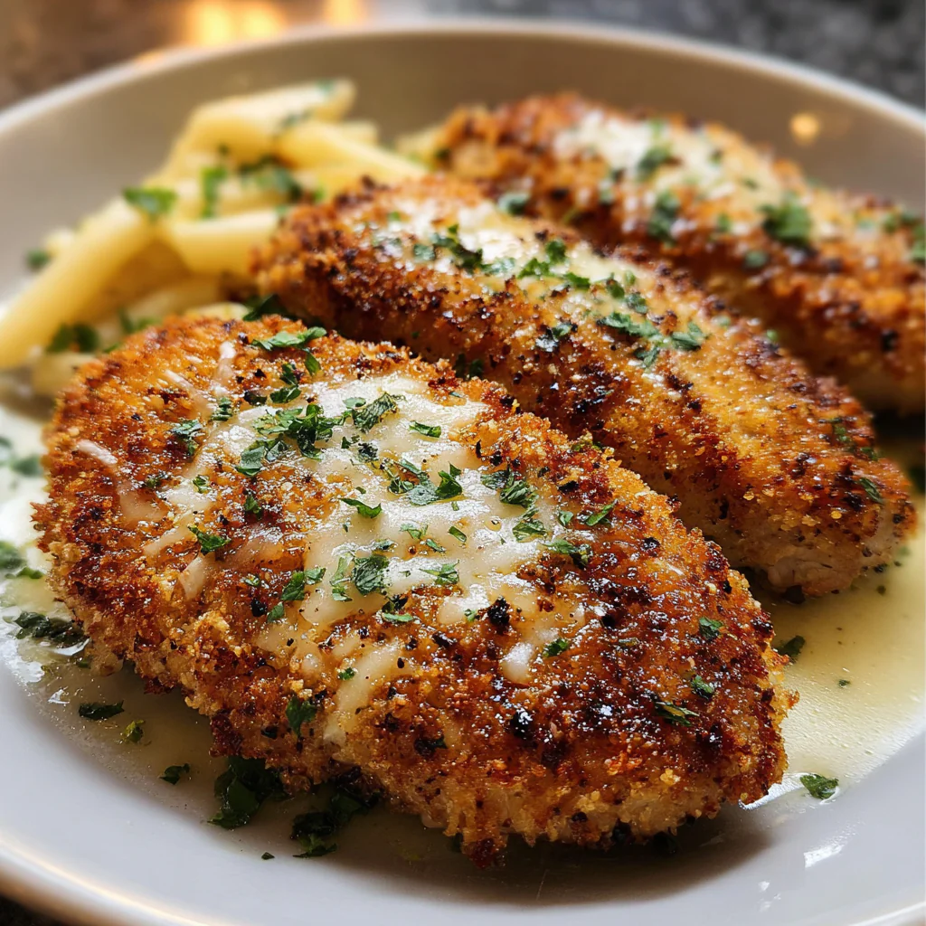 This recipe balances savory flavors with the rich texture of Parmesan cheese, creating a delicious alternative to fried chicken. The straightforward preparation makes it perfect for busy weeknights yet impressive enough for special occasions.