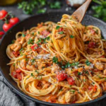 Simply double or triple the ingredients while maintaining the same cooking techniques. Ensure to use a larger pot for the pasta and a spacious skillet for the sauce.