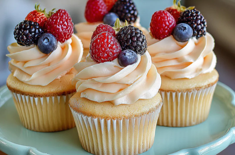 These cupcakes are not only visually appealing but also bursting with flavor. With each bite, you'll experience the harmony of light vanilla cake and the refreshing pop of berries. Whether you're hosting a summer gathering or simply treating yourself, these cupcakes are bound to impress.