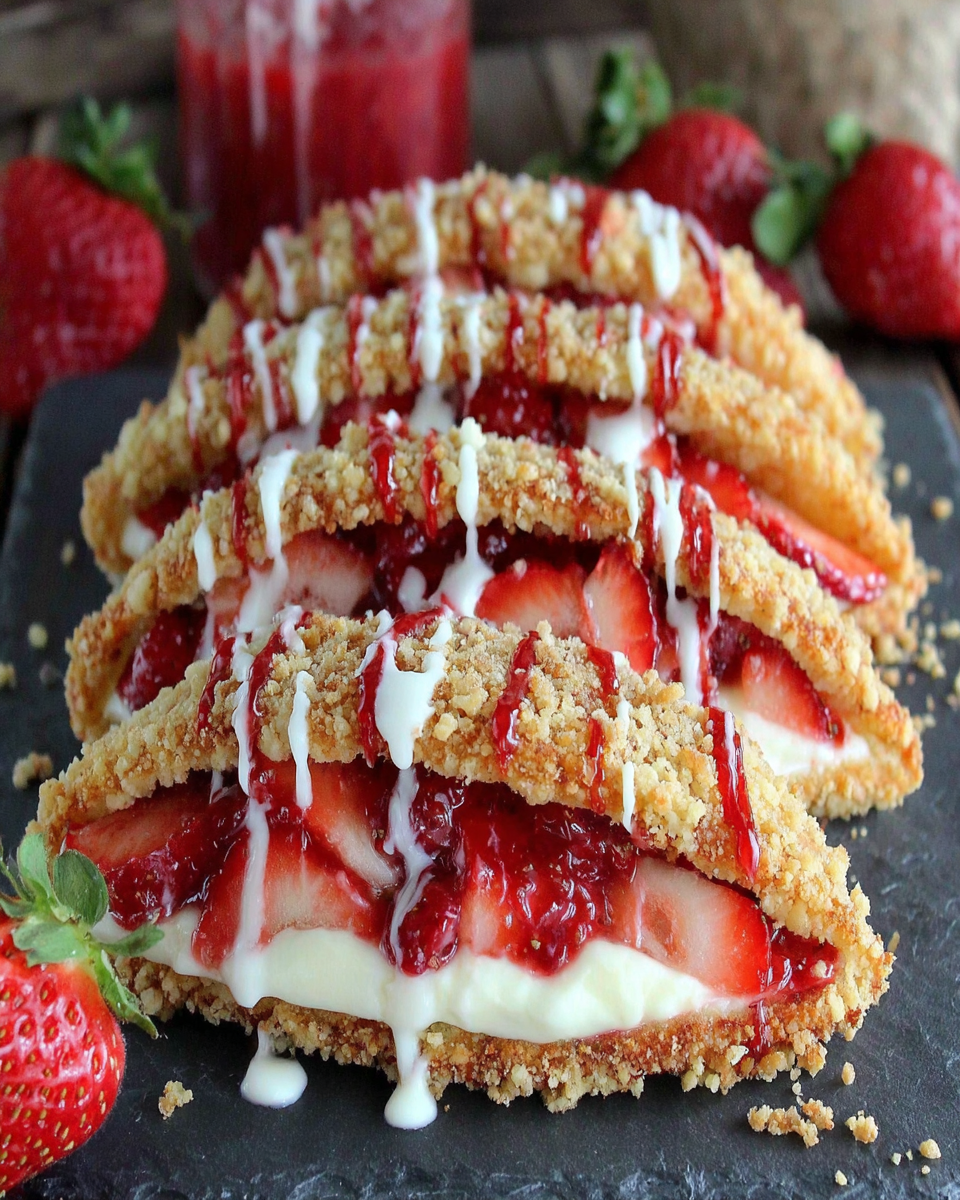 Strawberry Crunch Cheesecake Tacos are a whimsical twist on your standard cheesecake and dessert tacos. Combining the creaminess of cheesecake with the fresh, vibrant flavors of strawberries and the crunch of a cookie crust, these treats will surely impress. They are perfect for summer gatherings, birthday parties, or a sweet end to a cozy dinner.