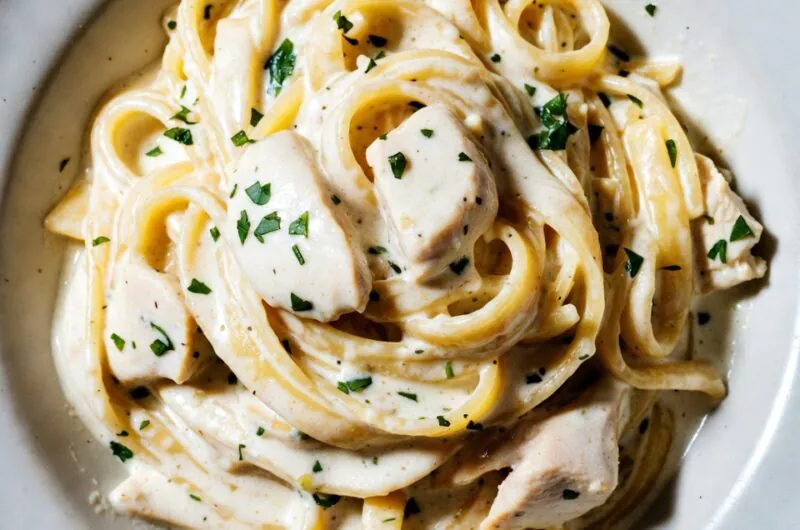 Silky, velvety Alfredo sauce coating tender chicken and perfectly cooked fettuccine — a weeknight dinner that tastes like it came from a restaurant kitchen, not your own.