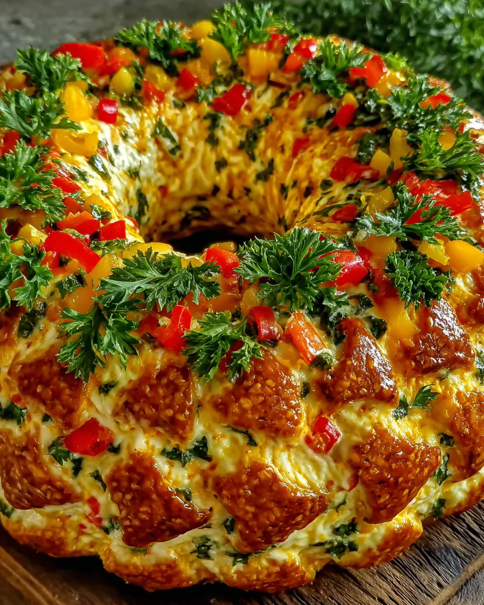 Fresh green onions contribute a mild, sweet onion flavor and add a nice crunch, brightening the wreath visually and texturally. - 1/2 cup diced bell peppers (red and green)