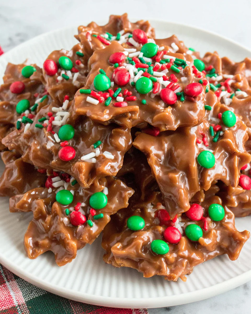 Sprinkles not only add festive flair but also provide a pop of color that makes this treat visually appealing, perfect for holiday parties or gifting.