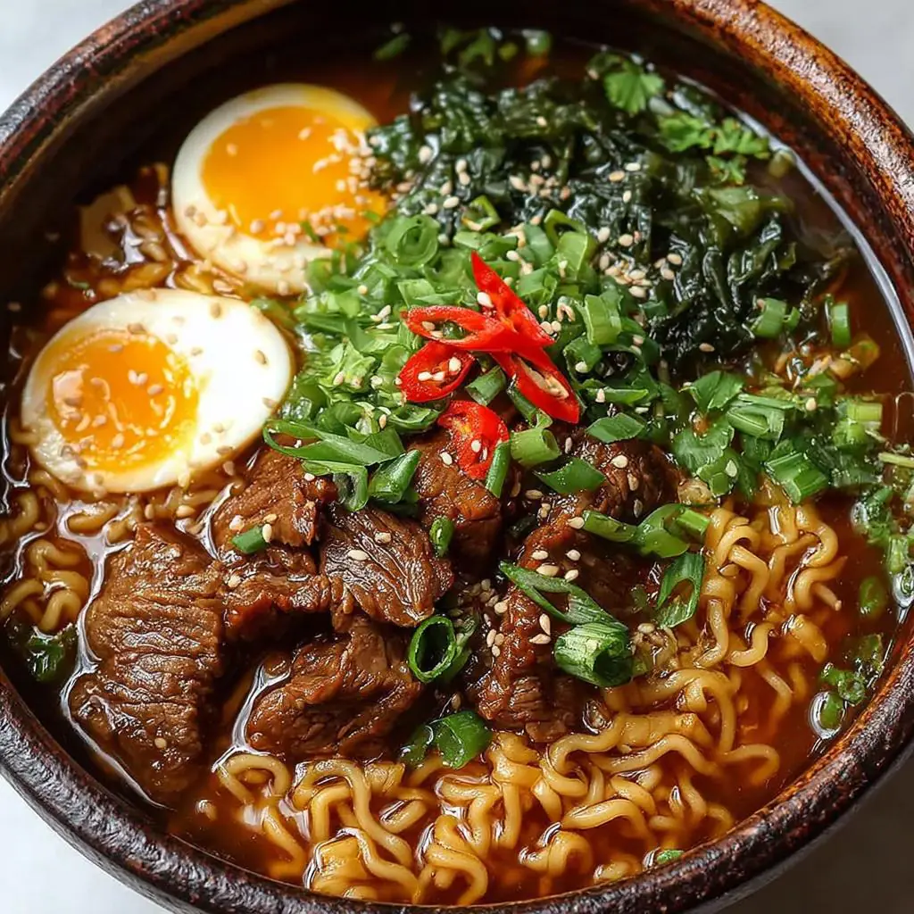 These noodles are substantial on their own, but a few sides can round out the meal. Kimchi is the obvious choice — its fermented tang cuts through the richness of the beef and sauce. Store-bought works, homemade is better if you’re feeling ambitious.