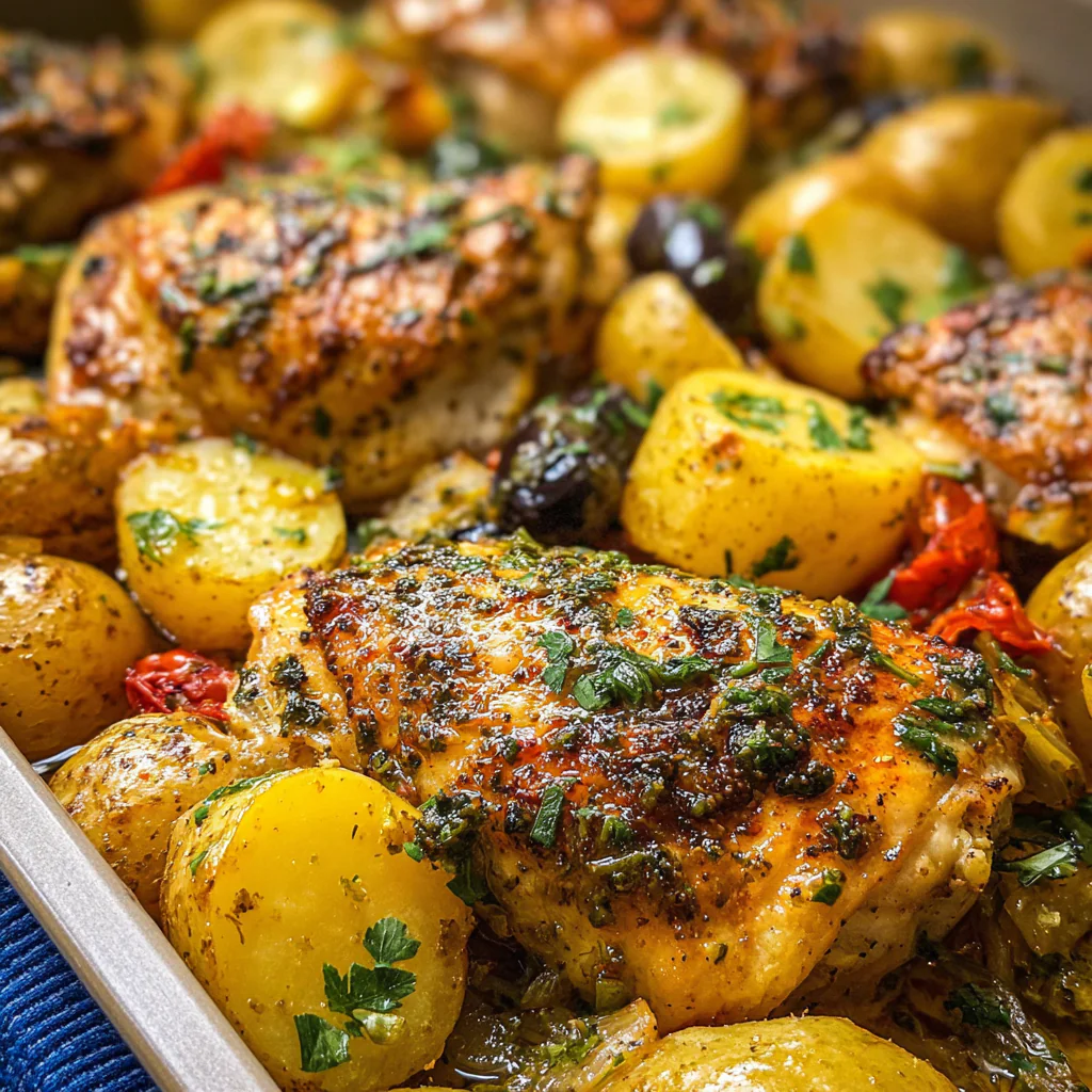 There’s a specific kind of magic that happens when you roast chicken and potatoes together. The fat renders out of the thighs, bathing the potatoes in savory richness, while the high heat turns the chicken skin into shattered glass-crispy perfection. This One-Pan Mediterranean Chicken and Potatoes recipe is the weeknight warrior you’ve been looking for. It relies on a high-heat roasting technique to balance textures—crispy skin, creamy potatoes, and tender vegetables—without the need for stovetop searing.