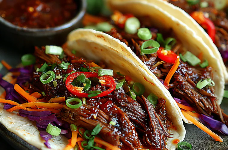 Savor the bold flavors of Korean Beef Tacos, featuring tender marinated beef, fresh veggies, and savory toppings, ideal for any gathering or weeknight meal.