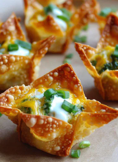 Crispy wontons filled with a zesty blend of cream cheese and jalapeños create a tantalizing appetizer, ideal for parties or game day celebrations.