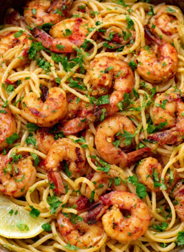 Savory Cajun BBQ Shrimp Scampi Linguine combines succulent shrimp with a zesty, smoky sauce over al dente linguine, ideal for festive gatherings or cozy dinner…