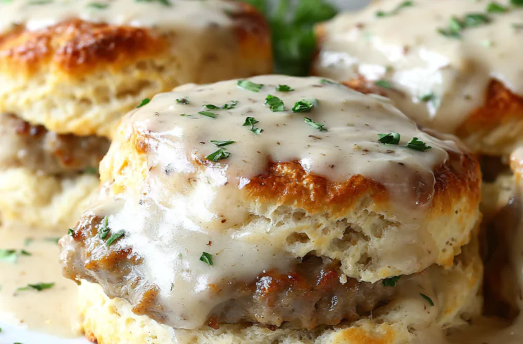 Warm, flaky Southern-Style Biscuits smothered in rich sausage gravy create a comforting dish ideal for cozy breakfasts or family gatherings any time of year.