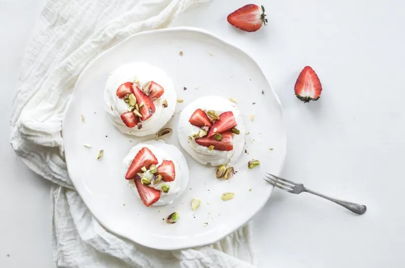 - In the bowl of an electric mixer, or by hand, beat the egg whites with a pinch of salt until they begin to get stiff. Beat in half of the sugar until stiff. Scrape the egg whites into a small bowl.