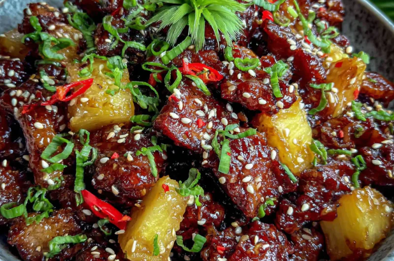 Slow cookers are the ultimate kitchen accomplice for busy home cooks, and this Teriyaki Pork with Pineapple is a shining example of their prowess. The combination of tender pork, caramelized pineapple, and savory teriyaki sauce creates a fulfilling meal that fills the air with enticing aromas.