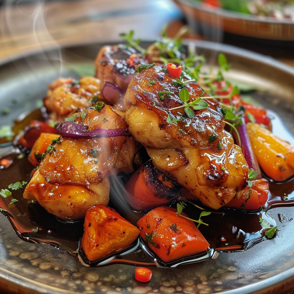 - For extra flavor, baste the chicken and veggies with the sauce from the pan during the last 5 minutes of cooking. This re-coats the food with the reduced, sticky glaze that has concentrated on the pan.
