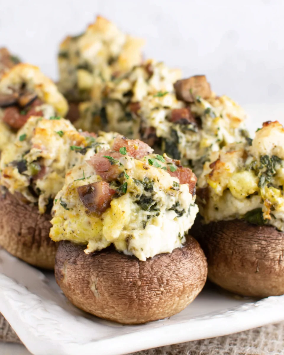 Savory Cheesy Spinach and Artichoke Stuffed Mushrooms